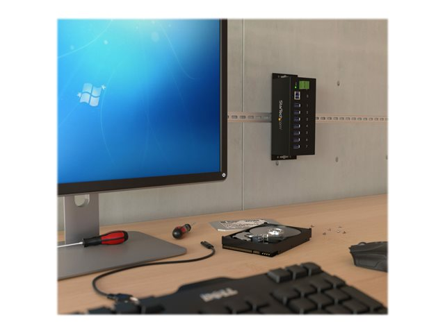 Industriell USB-A-hubb i metall med ESD-skydd och 350 W överspänningsskydd - Monterbar på DIN-skena, vägg eller skrivbord - TAA-kompatibel USB-expansionshubb - Hubb - 7 x SuperSpeed USB 3.0 - DIN-skenmonterbar, väggmonterbar - likström - för P/N: ITB20D3250, USB312SAT3CB, USB315CB2M, USBLT1MWS, USBLT2MBR, USBLTM1MBK, USBLTM1MWH