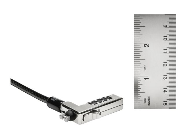 Produktbeskrivning Kensington Slim Combination Laptop Lock - lås för säkerhetskabel Produkttyp Lås för säkerhetskabel Produktmaterial Kolstål Dimensioner (BxDxH) 3.16 cm x 180 cm x 1.1 cm Längd 1.8 m Vikt 200 g Egenskaper 4-siffrig kod, skärresistent, justerbar rotation, återställningsbar funktion, 10000 användarinställningsbara kombinationer Tillverkarens garanti 5 års garanti -