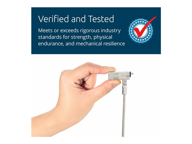 Produktbeskrivning Kensington Slim NanoSaver 2.0 EQ - lås för säkerhetskabel - huvudnyckel Produkttyp Lås för säkerhetskabel - huvudnyckel Produktmaterial Stainless steel Längd 1.8 m Egenskaper 5mm Keying System, stöldskydd, Register & Retrieve Tillverkarens garanti 5 års garanti -