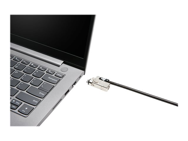 Produktbeskrivning Kensington Slim NanoSaver 2.0 Keyed Laptop Lock - lås för säkerhetskabel - huvudnyckel Produkttyp Lås för säkerhetskabel - huvudnyckel Produktmaterial Kolstål Längd 1.8 m Egenskaper Skärresistent, 5mm Keying System, Register & Retrieve Tillverkarens garanti 5 års garanti -