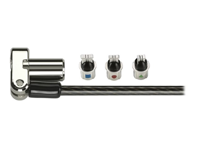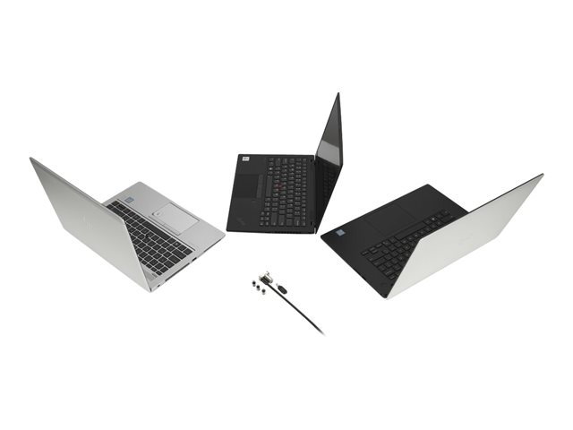 Produktbeskrivning Kensington Universal 3-in-1 Keyed Laptop Lock - lås för säkerhetskabel Produkttyp Lås för säkerhetskabel Produktmaterial Kolstål Längd 1.8 m Egenskaper Huvudsäkrad, dolt stift, med snodd, pivoterande, 5mm Keying System, justerbar rotation, Register & Retrieve -