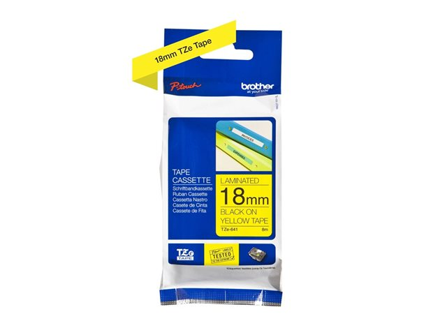 svart på gult - Rulle (1,8 cm x 8 m) 1 kassett(er) bandlaminat - för Brother PT-D600; P-Touch PT-18, D450, D800, E550, P750, P900; P-Touch Cube Plus PT-P710