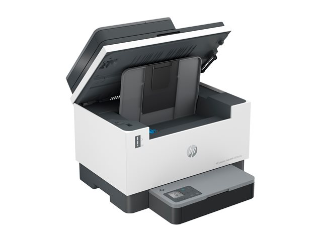 Produktbeskrivning HP LaserJet Tank MFP 2604sdw - multifunktionsskrivare - svartvit Typ av enhet Multifunktionsskrivare Lokalisering Engelska, tyska, spanska, franska, italienska / Europa Utskriftsteknik Laser (monokrom) Återfyllningsbar tank Ja Driftscykel per månad (max) 25000 sidor Rekommenderad månatlig volym 250 - 2 500 sidor Max kopieringshastighet Upp till 14 sidor/minut Max kopieringsupplösning Upp till 600 x 600 dpi Max utskriftshastighet Upp till 22 sidor/minut Max utskriftsupplösning Upp till 600 x 600 dpi Skanning 600 x 1200 dpi Originalstorlek 216 x 297 mm (max) Originaltyp Ark Dokumentmatarens kapacitet 40 ark Mediastorlek 102 x 152 mm (min) - Legal (216 x 356 mm), A4 (210 x 297 mm) (max) Mediatyp Vanligt papper, kuvert, etiketter, kortlager, brevkort Standard mediekapacitet 250 ark Max mediekapacitet 250 ark Utmatningsfackens kapacitet 100 ark Automatisk duplex Ja (utskrift) Anslutningsmöjlighet Ja Gränssnitt USB 2.0, LAN, Wi-Fi(n), Bluetooth LE AirPrint-aktiverad Ja Kontorsmaskinfunktioner Skanna till PDF, skanna till e-post, utskrift från mobila enheter, automatiskt pappersavkännare, HP Auto-On/Auto-Off Technology, Mopria-certifierad, Instant-on-teknologi Strömtillförsel AC 220-240 V (50/60Hz) Dimensioner (BxDxH) 41.8 cm x 34.5 cm x 31.14 cm Vikt 9.5 kg Miljöstandarder ENERGY STAR-godkänd, Blue Angel Tillverkarens garanti 3 års garanti med produktregistrering -