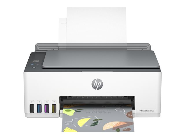 Produktbeskrivning HP Smart Tank 5105 All-in-One - multifunktionsskrivare - färg Typ av enhet Multifunktionsskrivare Lokalisering Baltikum, Irland, Nordiska länderna, Storbritannien, Västeuropa Utskriftsteknik Bläckstråle (färg) Bläckstråleteknik HP Thermal Inkjet - 4-färgs Återfyllningsbar tank Ja Driftscykel per månad (max) 3000 sidor Rekommenderad månatlig volym 400 - 800 sidor Max kopieringshastighet Upp till 10 sidor/minut (mono)/upp till 2 sidor/minut (färg) Max kopieringsupplösning Upp till 600 dpi (mono)/upp till 600 dpi (färg) Max utskriftshastighet Upp till 12 sidor/minut (mono)/upp till 5 sidor/minut (färg) Max utskriftsupplösning Upp till 1200 x 1200 dpi (mono)/upp till 4800 x 1200 dpi (färg) Skanning 1200 x 1200 dpi Display 1.2" Originalstorlek Legal (216 x 356 mm) (max) Originaltyp Ark Mediastorlek A4 (210 x 297 mm), Legal (216 x 356 mm) (max) Mediatyp Kuvert, vanligt papper, fotopapper, glansigt papper, matt papper Standard mediekapacitet 100 ark Utmatningsfackens kapacitet 30 ark Anslutningsmöjlighet Ja Gränssnitt USB 2.0, Wi-Fi(n), Bluetooth 4.2 LE AirPrint-aktiverad Ja Kontorsmaskinfunktioner HP Auto-Off Technology, mobil utskrift, skanna till PDF Strömtillförsel Växelström 120/230 V (50/60Hz) Dimensioner (BxDxH) 43.466 cm x 36.153 cm x 15.726 cm Vikt 5.03 kg Färg Lätt basalt Miljöstandarder ENERGY STAR-godkänd Tillverkarens garanti 1 års garanti -