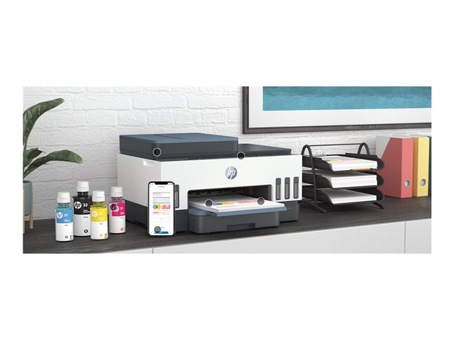 Produktbeskrivning HP Smart Tank 7305 All-in-One - multifunktionsskrivare - färg Typ av enhet Multifunktionsskrivare Lokalisering Västeuropa, Storbritannien, Irland, Nordiska länderna, baltikum Utskriftsteknik Bläckstråle (färg) Bläckstråleteknik HP Thermal Inkjet - 4-färgs Återfyllningsbar tank Ja Driftscykel per månad (max) 5000 sidor Rekommenderad månatlig volym 400 - 800 sidor Max kopieringshastighet Upp till 13 sidor/minut (mono)/upp till 6 sidor/minut (färg) Max kopieringsupplösning Upp till 600 dpi (mono)/upp till 600 x 600 dpi (färg) Max utskriftshastighet Upp till 15 sidor/minut (mono)/upp till 9 sidor/minut (färg) Max utskriftsupplösning Upp till 1200 x 1200 dpi (mono)/upp till 4800 x 1200 dpi (färg) Skanning 1200 x 1200 dpi Originalstorlek Letter A (216 x 279 mm)/A4 (210 x 297 mm) (max) Originaltyp Ark Mediastorlek 88.9 x 127 mm (min) - Legal (216 x 356 mm), A4 (210 x 297 mm) (max) Mediatyp Kuvert, vanligt papper, kort, fotopapper Standard mediekapacitet 250 ark Utmatningsfackens kapacitet 100 ark Automatisk duplex Ja (utskrift) Anslutningsmöjlighet Ja Gränssnitt USB 2.0, LAN, Wi-Fi(n), Bluetooth LE AirPrint-aktiverad Ja Kontorsmaskinfunktioner Skanna till PDF Strömtillförsel Växelström 120/230 V (50/60Hz) Dimensioner (BxDxH) 42.75 cm x 36.4 cm x 24.03 cm Vikt 7.7 kg Tillverkarens garanti 3 års garanti -