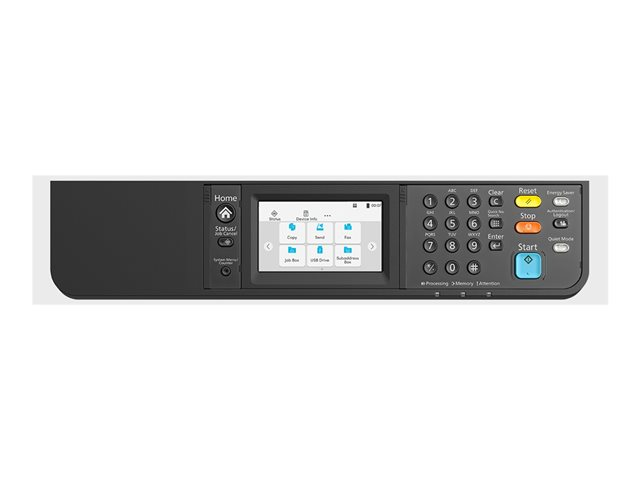 Produktbeskrivning Kyocera ECOSYS MA4000wifx - multifunktionsskrivare - svartvit Typ av enhet Multifunktionsskrivare Faxtyp Super G3 Utskriftsteknik Laser (monokrom) Driftscykel per månad (max) 80000 sidor Rekommenderad månatlig volym 2000 sidor Max kopieringshastighet Upp till 40 sidor/minut Max kopieringsupplösning Upp till 600 x 600 dpi Max utskriftshastighet Upp till 40 sidor/minut Max utskriftsupplösning Upp till 1200 x 1200 dpi Max faxöverföringshastighet 33.6 Kbps Datakomprimeringssystem JBIG, MH, MMR, MR Faxupplösningar 200 x 100 dpi, 200 x 200 dpi, 200 x 400 dpi, 400 x 400 dpi Skanning 600 x 600 dpi Display 4.3" Originalstorlek A6 (105 x 148 mm) (min) - Legal (216 x 356 mm)/A4 (210 x 297 mm) (max) Originaltyp Ark Dokumentmatarens kapacitet 50 ark Mediastorlek 70 x 148 mm (min) - Legal (216 x 356 mm)/A4 (210 x 297 mm) (max) Mediatyp Vanligt papper, returpapper, förtryckt papper, bond paper, färgat papper, brevpapper, tjockt papper, OH-film, etiketter, kortlager, kuvert, förstansat papper Standard mediekapacitet 350 ark Max mediekapacitet 850 ark Kapacitet hos förbikopplande dokumentmatare 50 ark Utmatningsfackens kapacitet 150 ark Automatisk duplex Ja (kopiering) Ja (utskrift) Ja (skannar) Anslutningsmöjlighet Ja Gränssnitt USB-värd, USB 2.0, Gigabit LAN, Wi-Fi(ac) AirPrint-aktiverad Ja Kontorsmaskinfunktioner Proof and Hold, Job Storage, Quick Copy, Personligt tryck, IPP-utskrift, spara till USB Flash-enhet, skanna till e-post, skanna till FTP, skanna till nätverk, skanna till SMB, skanna till USB-värd, inbäddad OCR, Nätverksfaxserver Strömtillförsel AC 220-240 V (50/60Hz) Dimensioner (BxDxH) 41.7 cm x 41.2 cm x 43.7 cm Vikt 19.5 kg Tillverkarens garanti 3 års garanti -