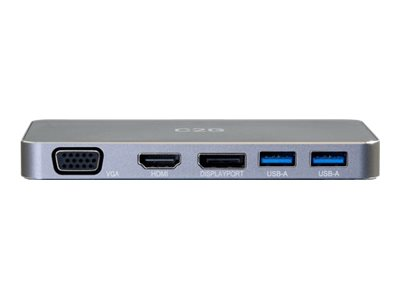 Produktbeskrivning C2G - dockningsstation - USB-C - VGA, HDMI, DP Typ av produkt Dockningsstation Dockningsgränssnitt USB-C Videogränssnitt VGA, HDMI, DP Dimensioner (BxDxH) 12.7 cm x 6.32 cm x 1.4 cm Vikt 130 g Färg Svart Frånsägelse av ansvar gällande bildfärg Den produkt som visas har eventuellt en annan färg Strömtillförsel Nätaggregat AC 120/230 V Tillverkarens garanti 1 års garanti -