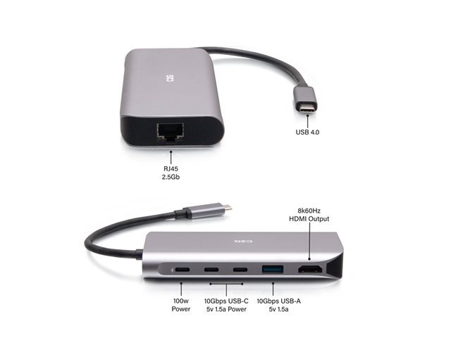 C2G USB-C 4.0 6-in-1 Mini Docking Station with HDMI, USB-A, Ethernet, and USB-C 85W- 8K 60HZ