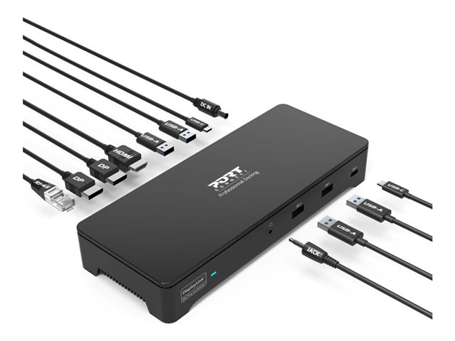 Produktbeskrivning PORT connect Professional Docking OFFICE - dockningsstation - USB-C 3.1 Gen 2 - 2 x DP, HDMI - 1GbE Typ av produkt Dockningsstation Dockningsgränssnitt USB-C 3.1 Gen 2 Videogränssnitt 2 x DP, HDMI Dimensioner (BxDxH) 9.2 cm x 22.2 cm x 3 cm Vikt 828 g Lokalisering Europa Nätverk Gigabit Ethernet Strömtillförsel Strömadapter 130 Watt Effekt Tillverkarens garanti 3 års garanti -