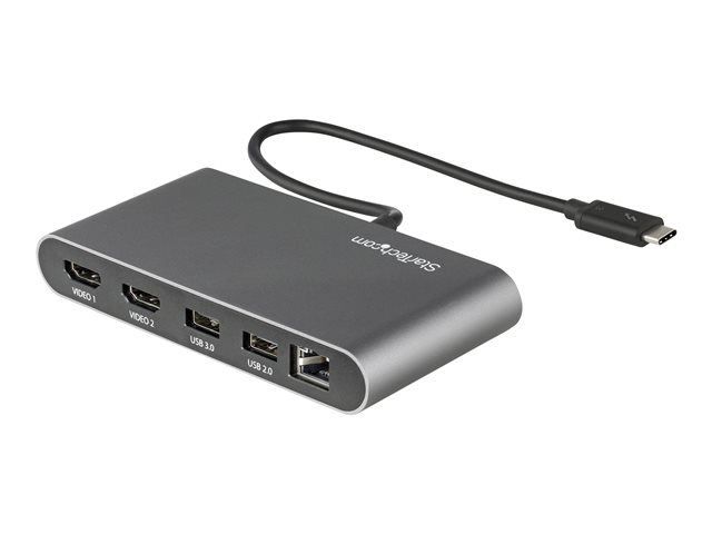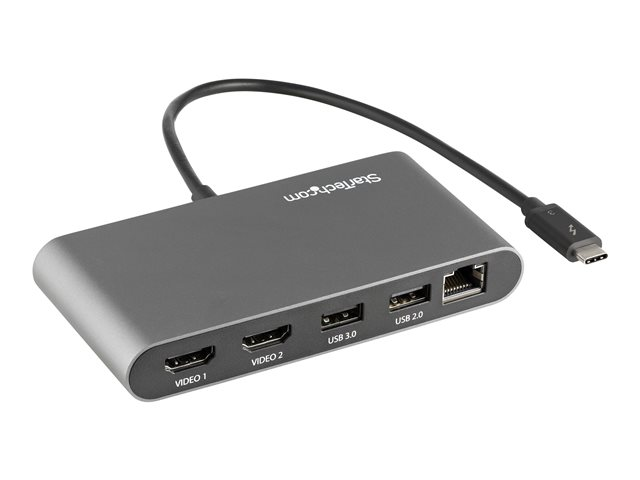 Produktbeskrivning StarTech.com Thunderbolt 3 Mini Dock - Portable Dual Monitor w/HDMI 4K 60Hz - 2X USB-A Hub (3.2/2.0), GbE - 28cm Cable - TB3 Multiport Adapter - Mac/Windows - Upgraded Version of TB3DKM2HD (TB3DKMHDL) - dockningsstation - Thunderbolt 3 - 2 x HDMI - 1GbE Typ av produkt Dockningsstation Dockningsgränssnitt Thunderbolt 3 Videogränssnitt 2 x HDMI Dimensioner (BxDxH) 6.9 cm x 12.4 cm x 2.7 cm Vikt 148 g Färg Svart & silver Nätverk Gigabit Ethernet Tillverkarens garanti 3 års garanti -