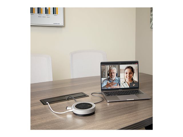 Produktbeskrivning StarTech.com USB-C Conference Speaker Mini Dock, Portable Boardroom Speaker and Multiport Adapter, USB-C to VGA or 4K 60Hz HDMI, 2x USB-A (5Gbps) Hub, Mic/Speaker - Teams/Zoom/Softphone Speakerphone (DKTBRSPMPD) - mini-dockningsenhet - USB-C / Thunderbolt 3 / Thunderbolt 4 - HDMI, VGA Typ av produkt Mini-dockningsenhet Dockningsgränssnitt USB-C / Thunderbolt 3 / Thunderbolt 4 Videogränssnitt HDMI, VGA Dimensioner (BxDxH) 13 cm x 13 cm x 3.6 cm Vikt 600 g Färg Rymdgrå Ljudutgång Högtalare Tillverkarens garanti 3 års garanti -