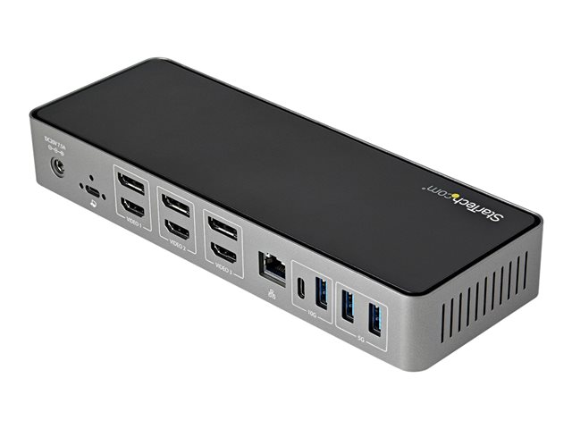 Produktbeskrivning StarTech.com USB-C- och USB-A-dockningsstation - Universal hybriddockningsstation för trippla bildskärmar, DisplayPort och HDMI 4K 60 Hz - 85 W strömförsörjning, 6x USB-hubb, GbE, Ljud - USB 3.1 Gen. 2, 10 Gbit/sek - dockningsstation - USB-C - 3 x HDMI, 3 x DP - 1GbE Typ av produkt Dockningsstation Dockningsgränssnitt USB-C Videogränssnitt 3 x HDMI, 3 x DP Dimensioner (BxDxH) 8.4 cm x 23.3 cm x 3.7 cm Vikt 365 g Färg Grå, svart Nätverk Gigabit Ethernet Strömtillförsel Strömadapter AC 100/240 V 85 Watt Effekt Tillverkarens garanti 3 års garanti -