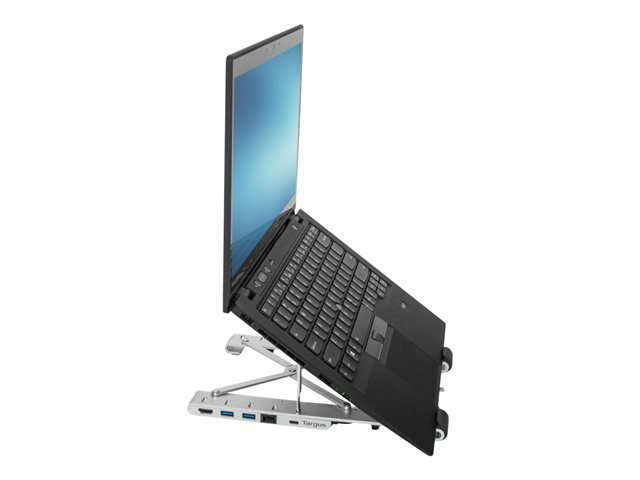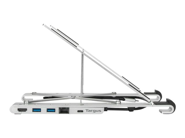 Produktbeskrivning Targus Portable Stand with Integrated Dock - dockningsstation + ställ för bärbar dator - USB-C 3.2 Gen 1 / Thunderbolt 3 - HDMI - 1GbE Typ av produkt Dockningsstation + ställ för bärbar dator Dockningsgränssnitt USB-C 3.2 Gen 1 / Thunderbolt 3 Videogränssnitt HDMI Vikt 360 g Färg Silver Nätverk Gigabit Ethernet Tillverkarens garanti 2 års garanti -