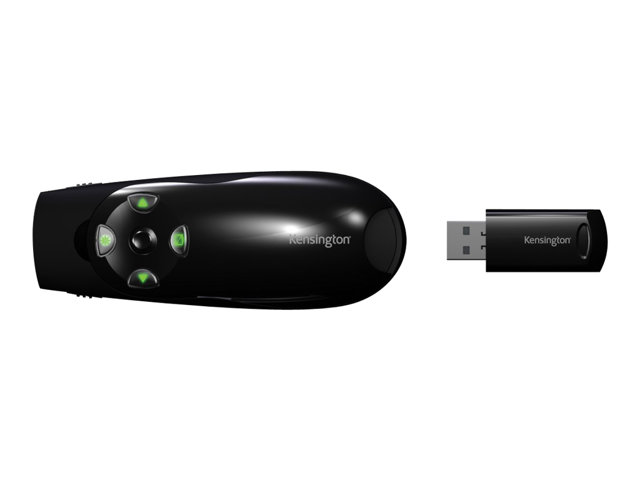 Produktbeskrivning Kensington Presenter Expert Green Laser with Cursor Control presentationsfjärrkontroll - svart Typ av enhet Presentationsfjärrkontroll Färg Svart Lokalisering Europa Anslutningsteknologi Radio Max arbetsavstånd 50 m Batteri Batteri för pekenhet -