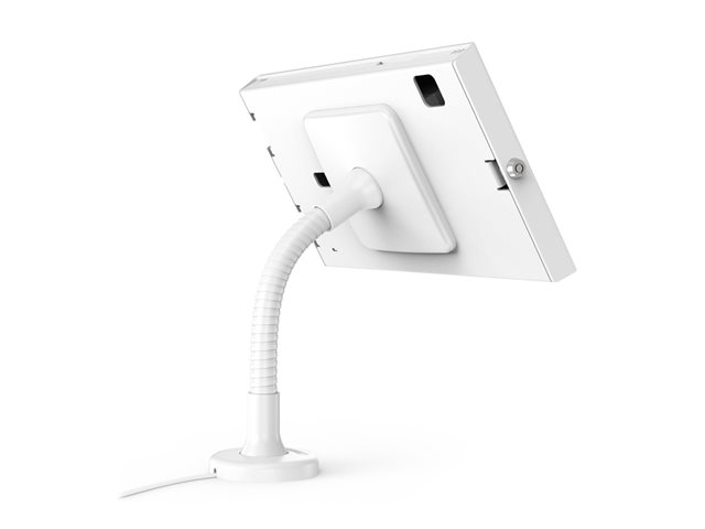 Monteringssats (hölje, flexibel arm) - synliga kameror och sensorer fram/bak - för surfplatta - låsbar - metallram - vit - skärmstorlek: 11" - bänkskiva, väggmonterbar - för Samsung Galaxy Tab A9+