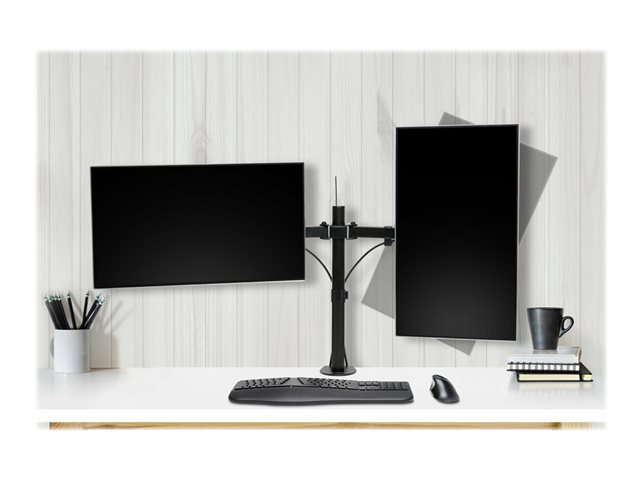 Monteringssats - justerbar arm - för 2 monitorer - metall - svart - skärmstorlek: upp till 32 tum - skrivbord, C-klämma, skyddshylsa, disk-monteringsbar