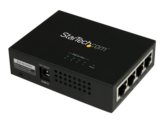 PoE+-injektor - 802.3at/af - Strömtillförsel - AC 100-240 V - 120 Watt - utgångskontakter: 4 - svart - för P/N: POEEXT1GAT, POEEXT2GAT, ST12MHDLANU
