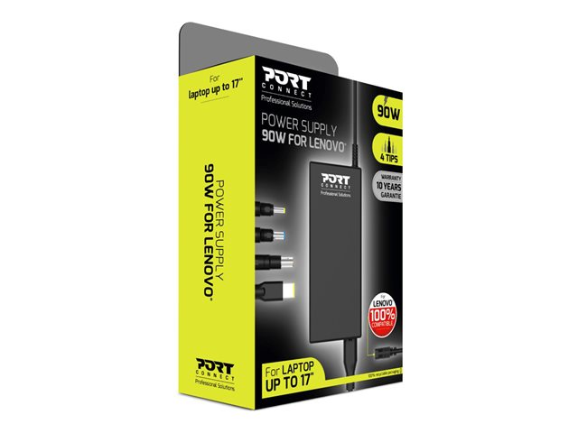 Produktbeskrivning PORT Connect Universal Power Supply - strömadapter - 90 Watt Typ av enhet Strömadapter - extern Vikt 468 g Inspänning AC 100-240 V Utspänning 19 V Effektkapacitet 90 Watt Färg Svart Dimensioner (BxDxH) 12.7 cm x 5 cm x 3.05 cm Tillverkarens garanti 10 års garanti -